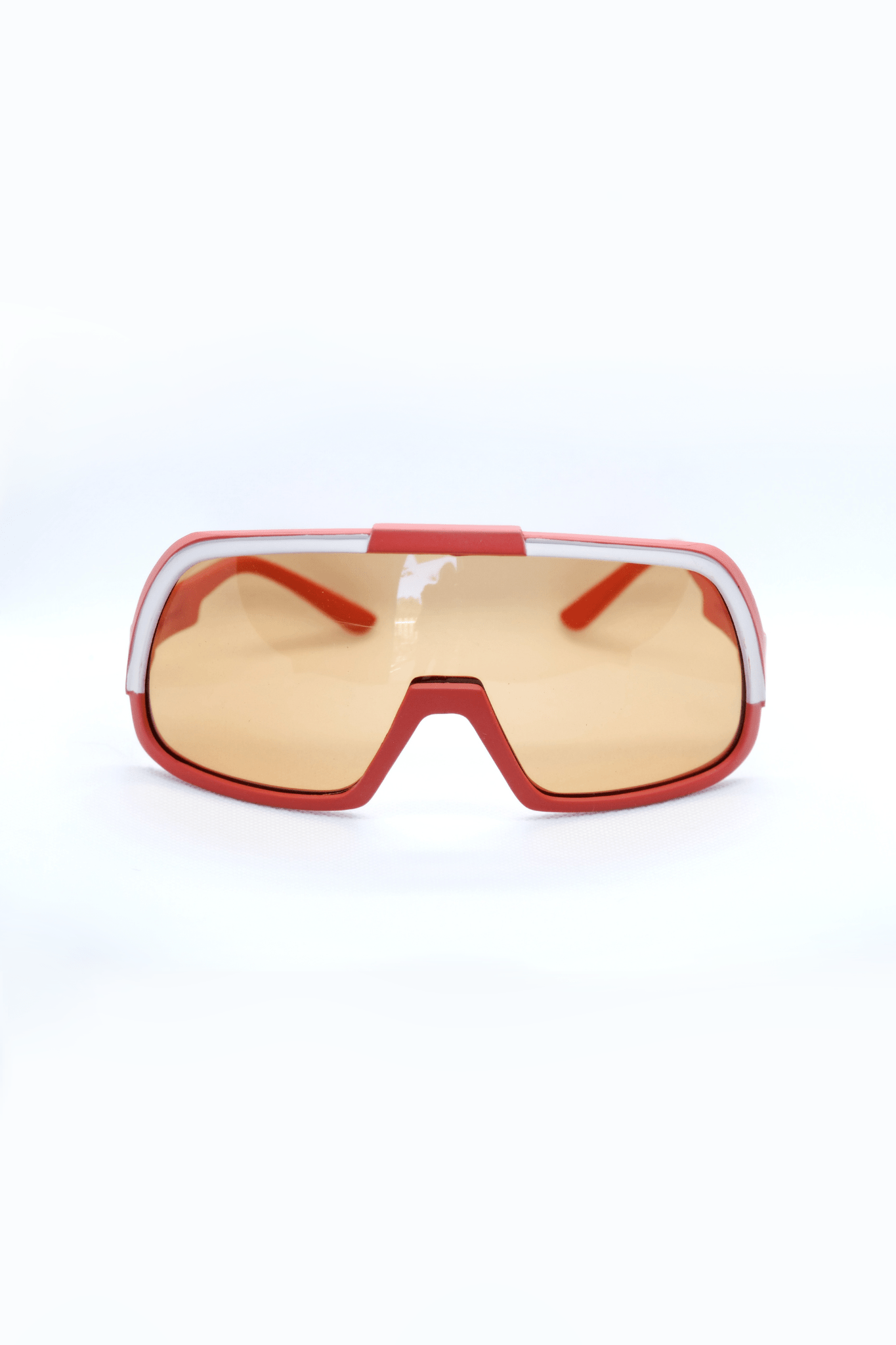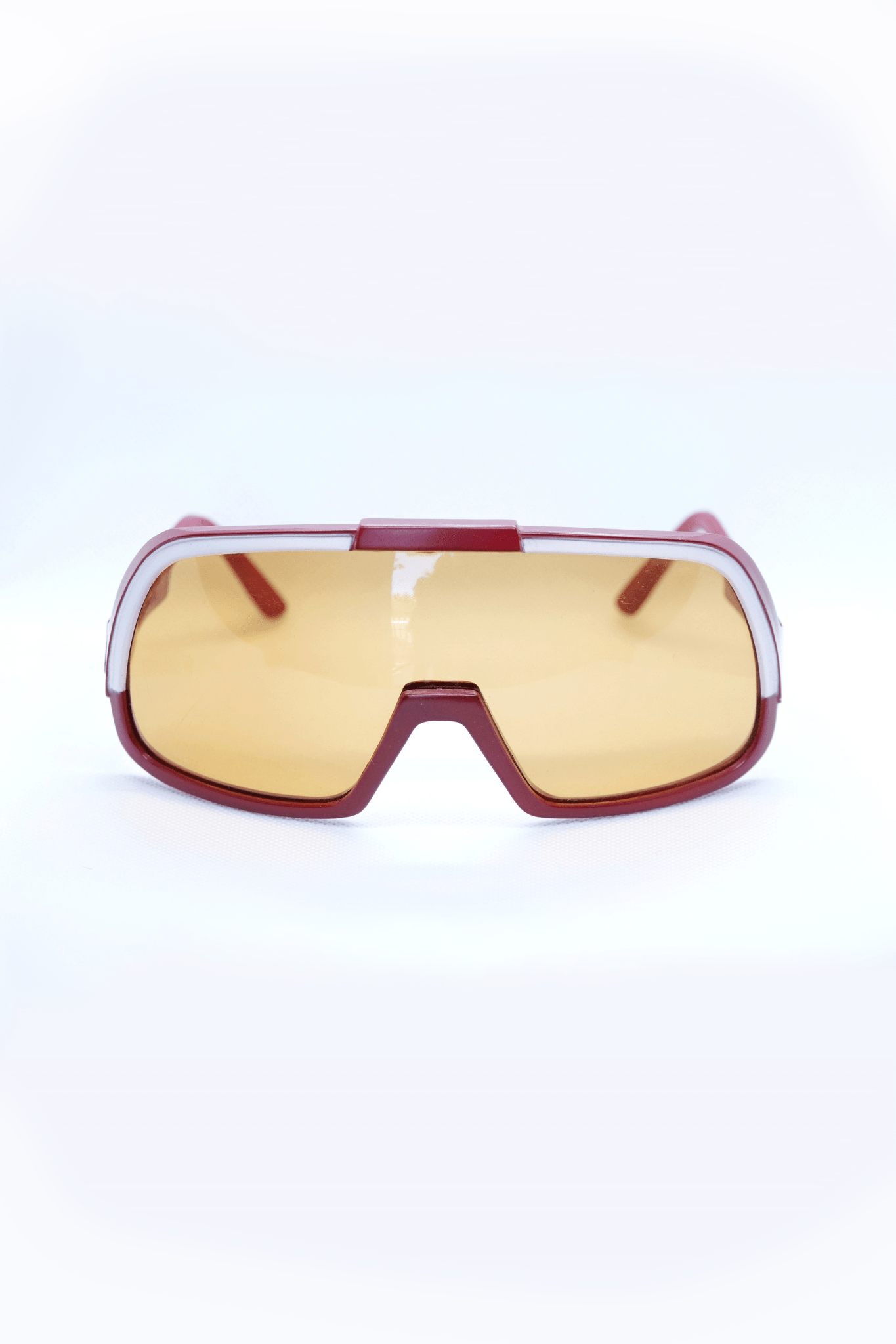 Vintage Alpina sunglasses from the 70s, characterized by their wide frame and duo-tone color. These are the ancestors of the Alpina Rocket sunglasses with a yellow lens designed for outdoor activities and all type of sports, but mainly skiing.