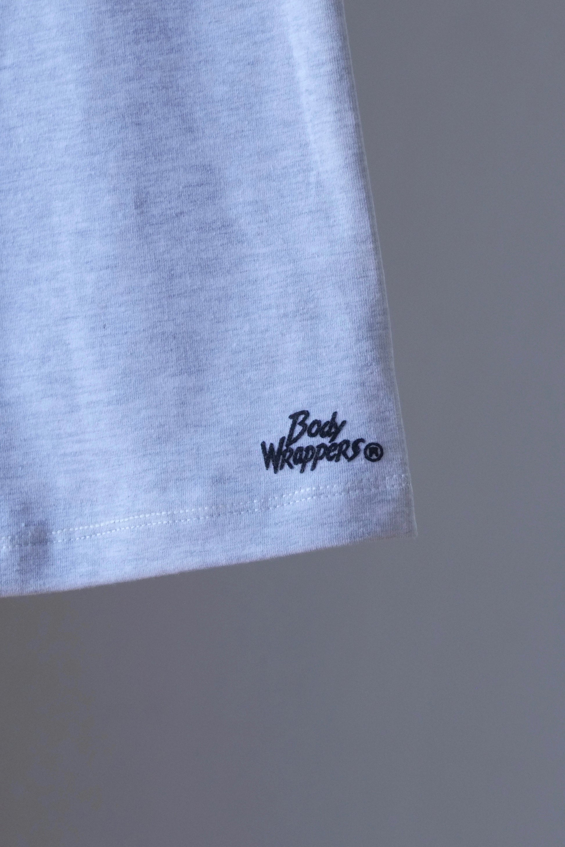 Body Wrappers gray cotton vintage 90s bike shorts. Designed with a mid-thigh cut, elastic waistband, and soft stretch fabric for movement and comfort. Available in two very close shades of heather gray.