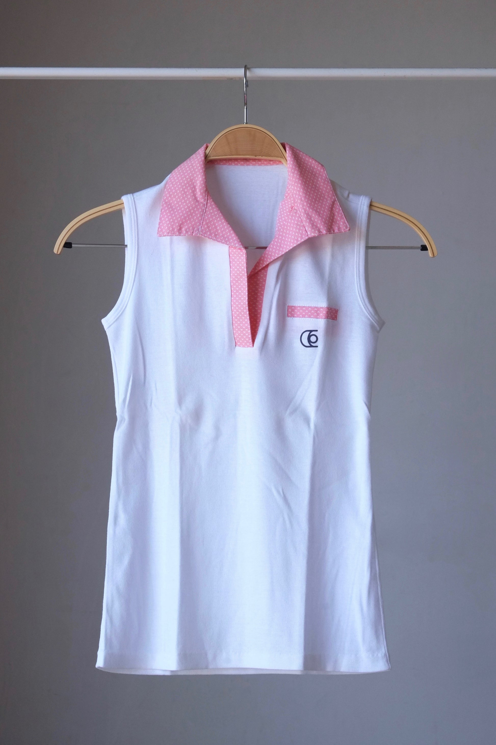 ELIETTE Penelope Cotton Vintage Tennis Top from the 80's. Vintage 80's sleeveless top, with 2 button front placket, and pink edging.