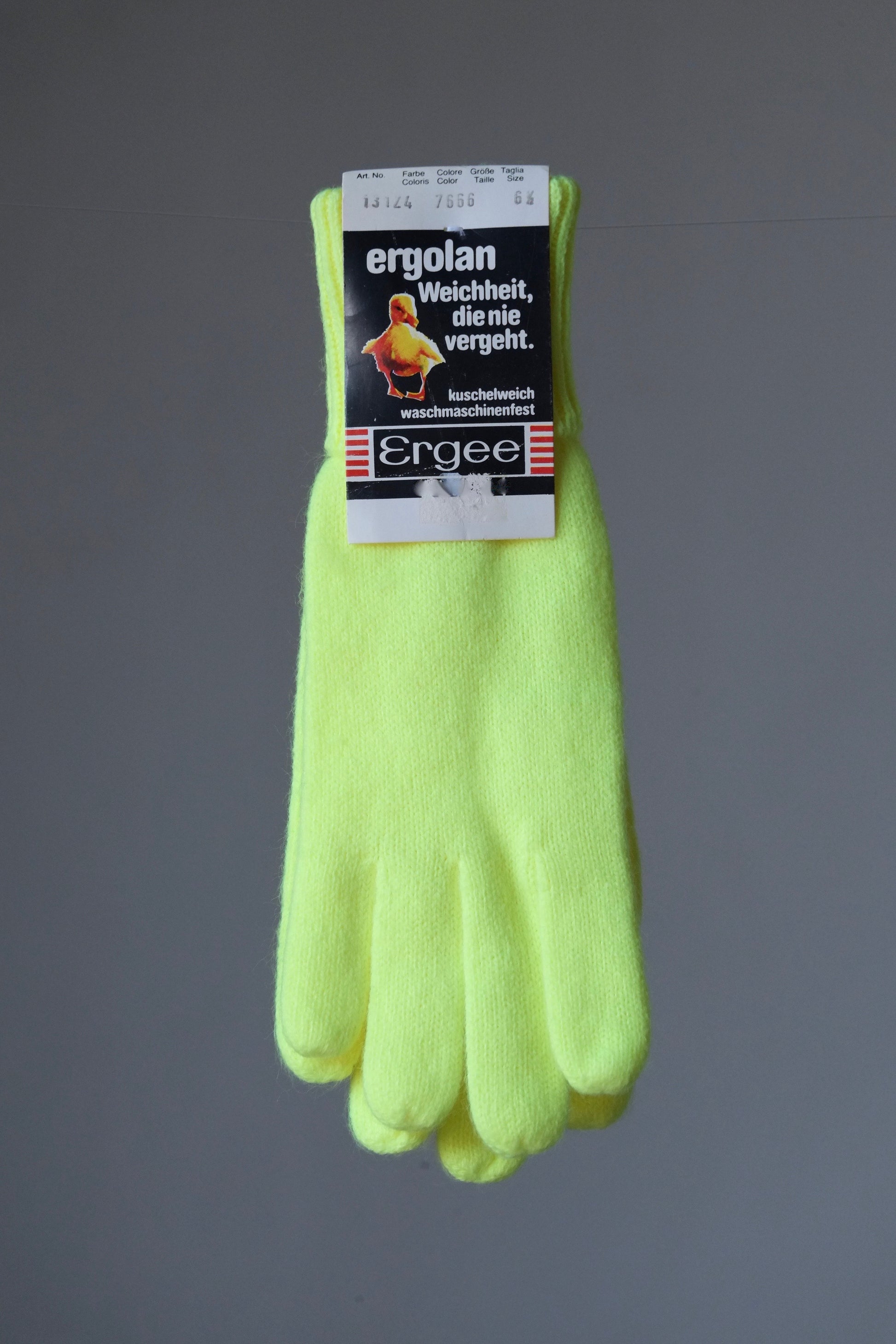 Vintage 90s extremely soft wool gloves, in neon yellow.