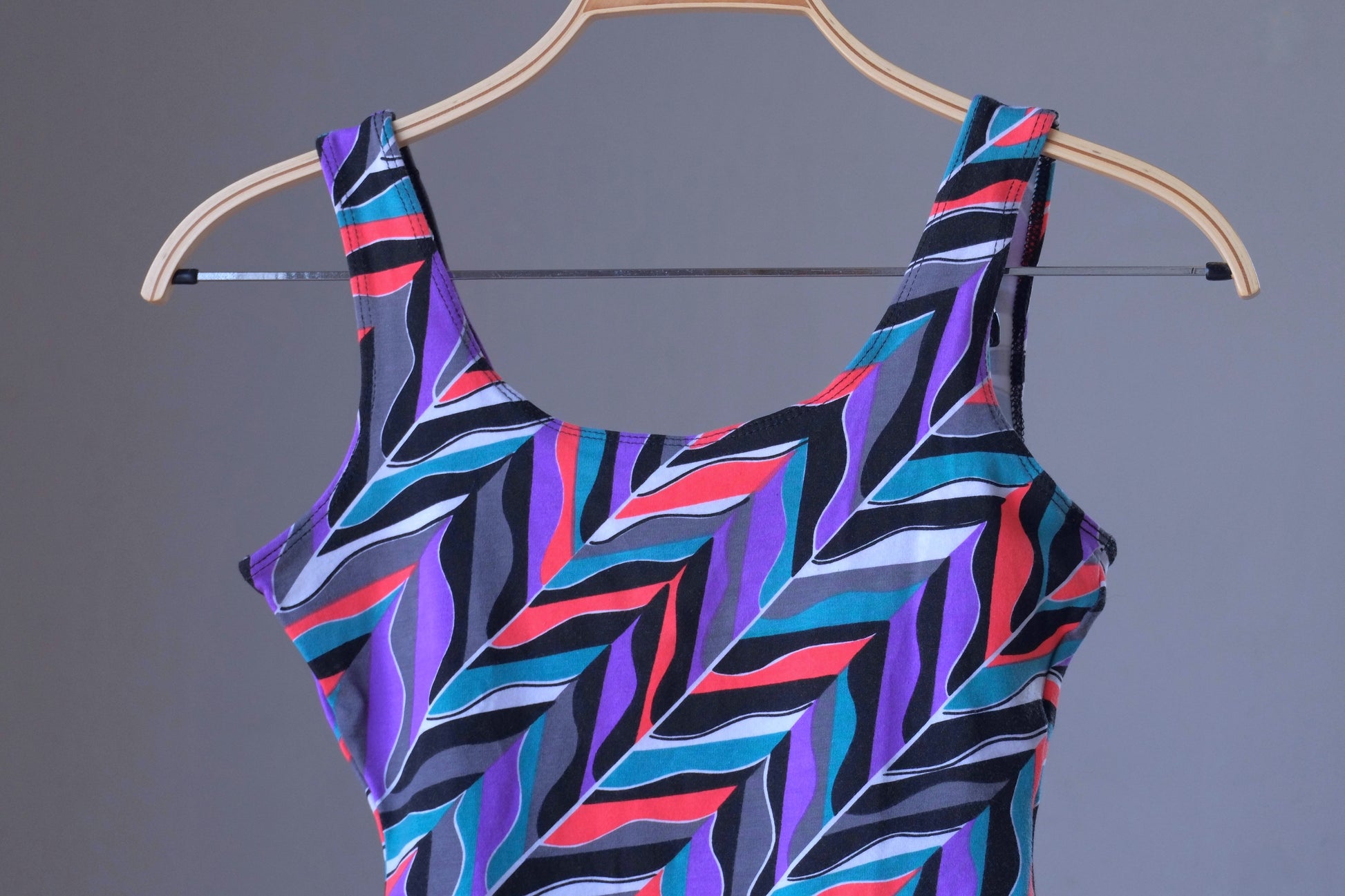 Vintage Late 90s Workout and Aerobics Leotard – Chevron Print with a High-Cut Thigh Design.