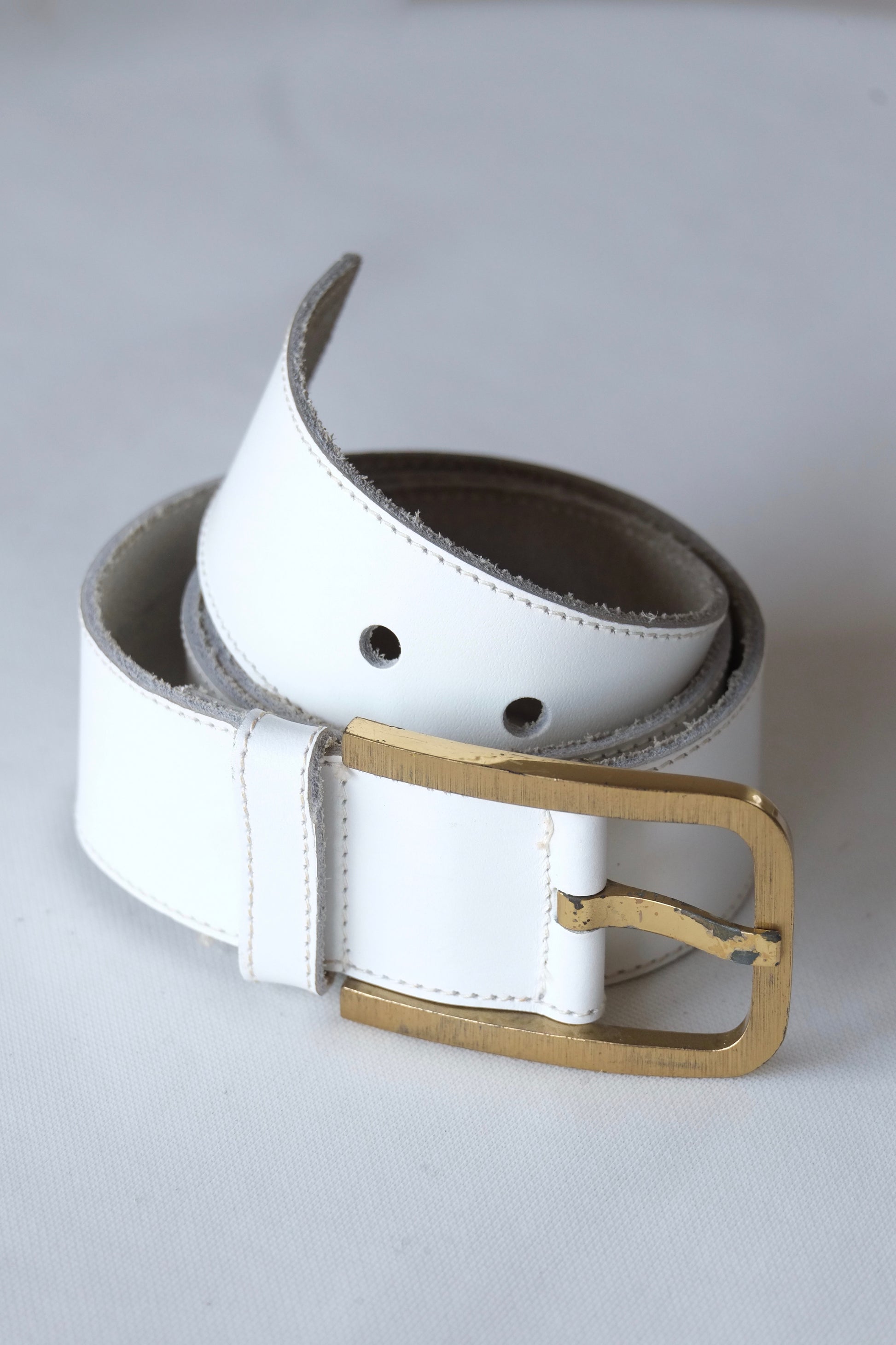 L'AIGLON Marcello Leather Belt. Vintage 70s real leather belt with gold rectangular buckle.