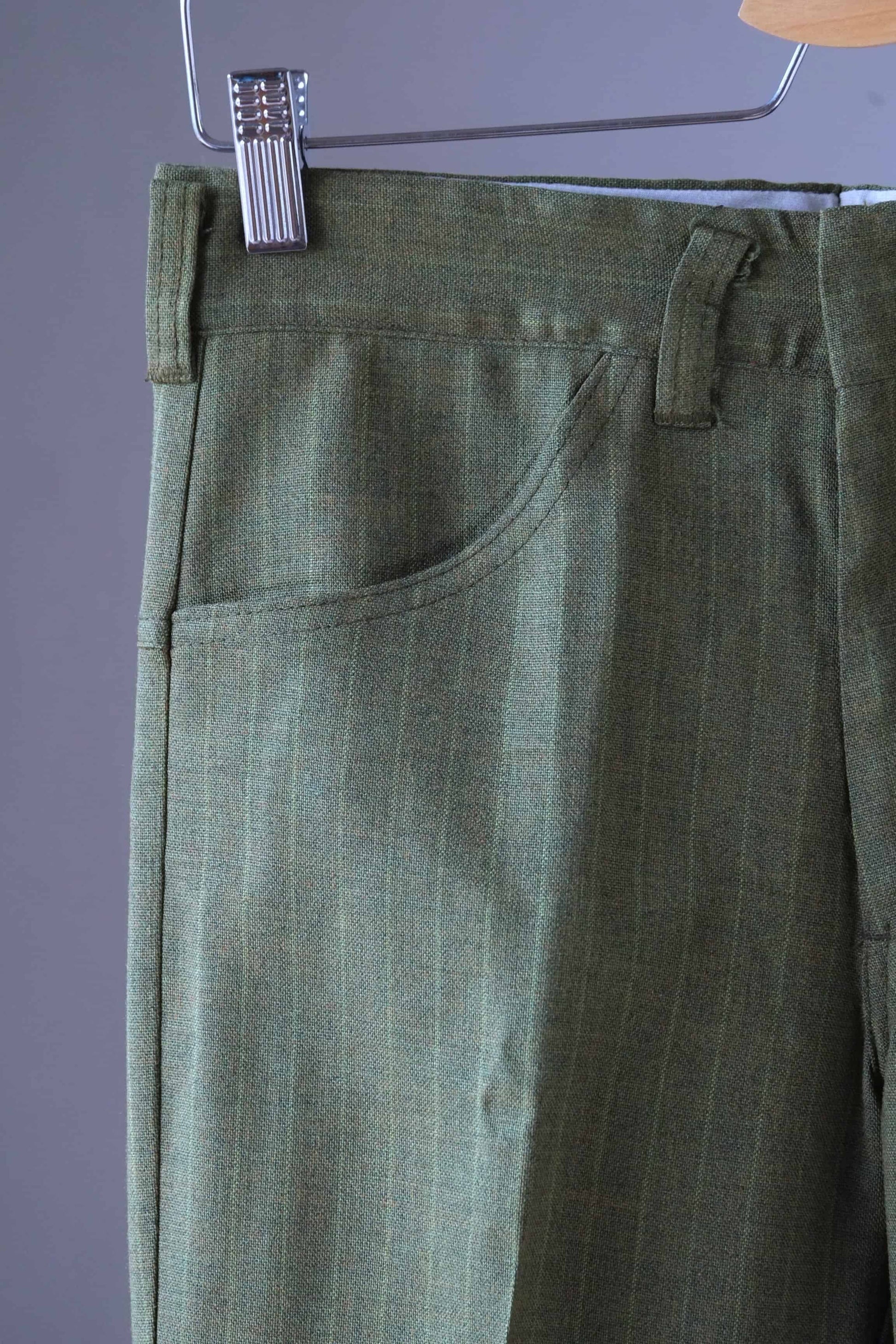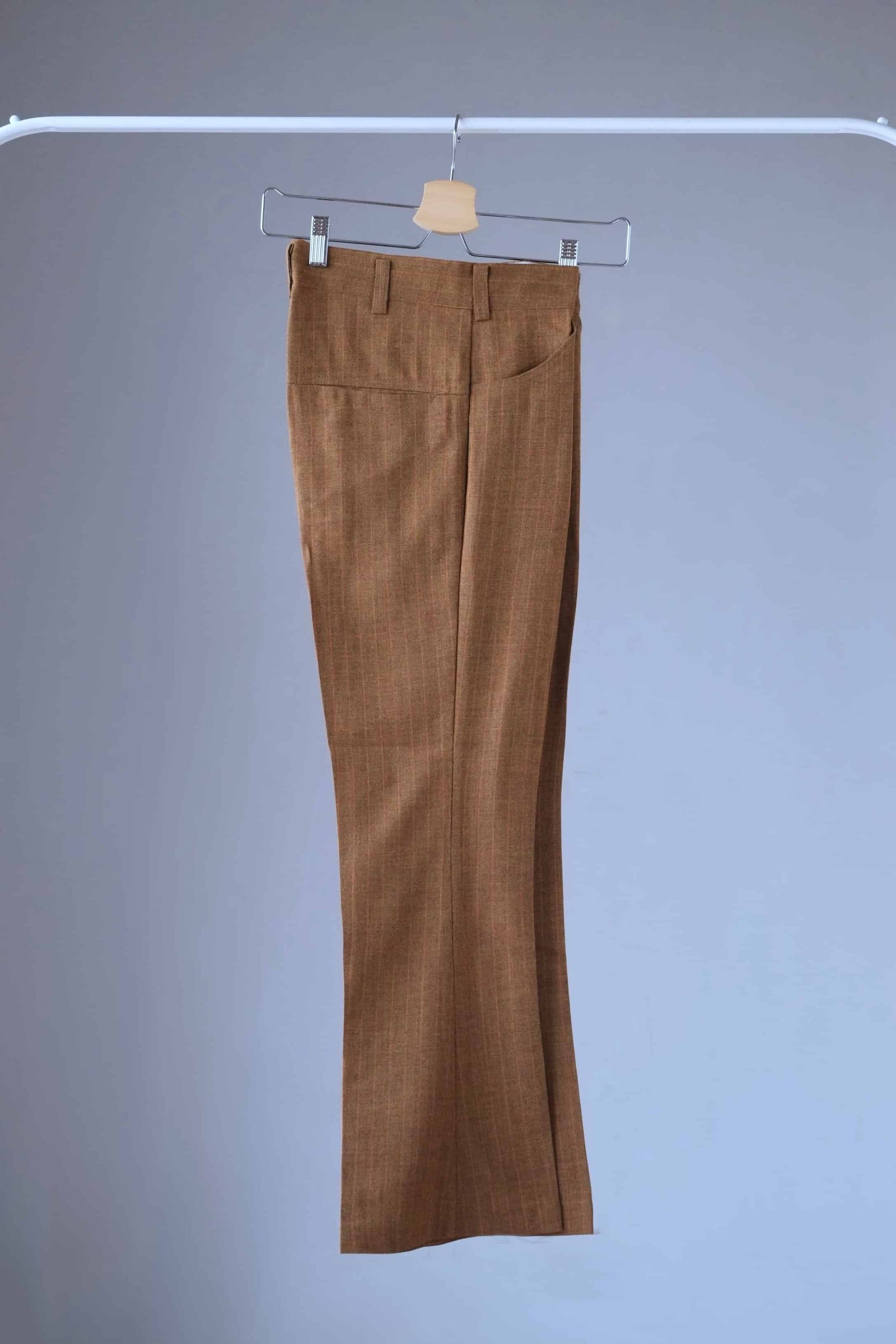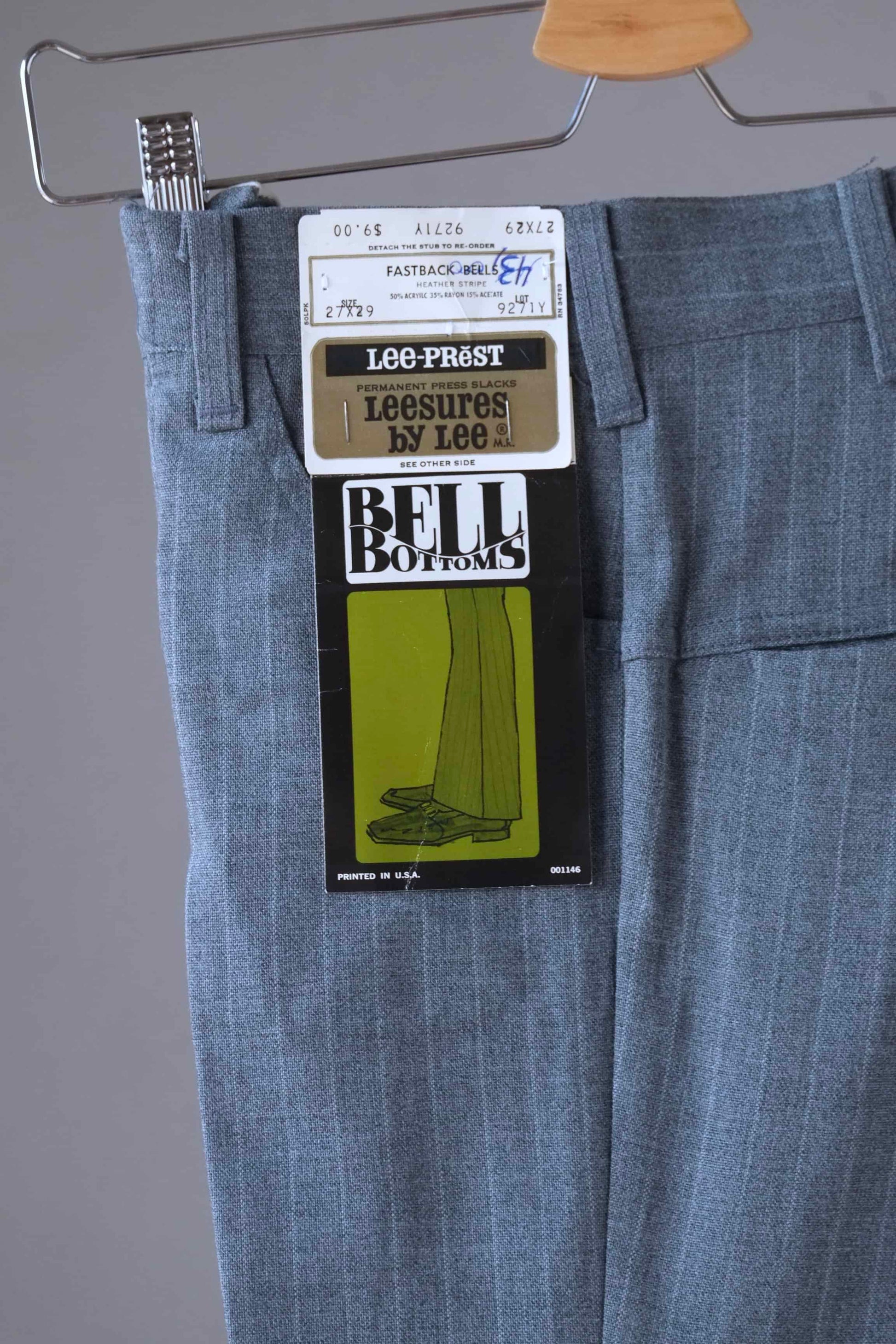 These rare Lee Fastback vintage late 60's to early 70's Bell Bottoms are made from a heather stripe fabric, mid-rise fit and flare hems. They also have 2 front pockets, 2 invisible back pockets, belt loops, a zipper closure and Lee embossed buttons. Perfect for any vintage lover!