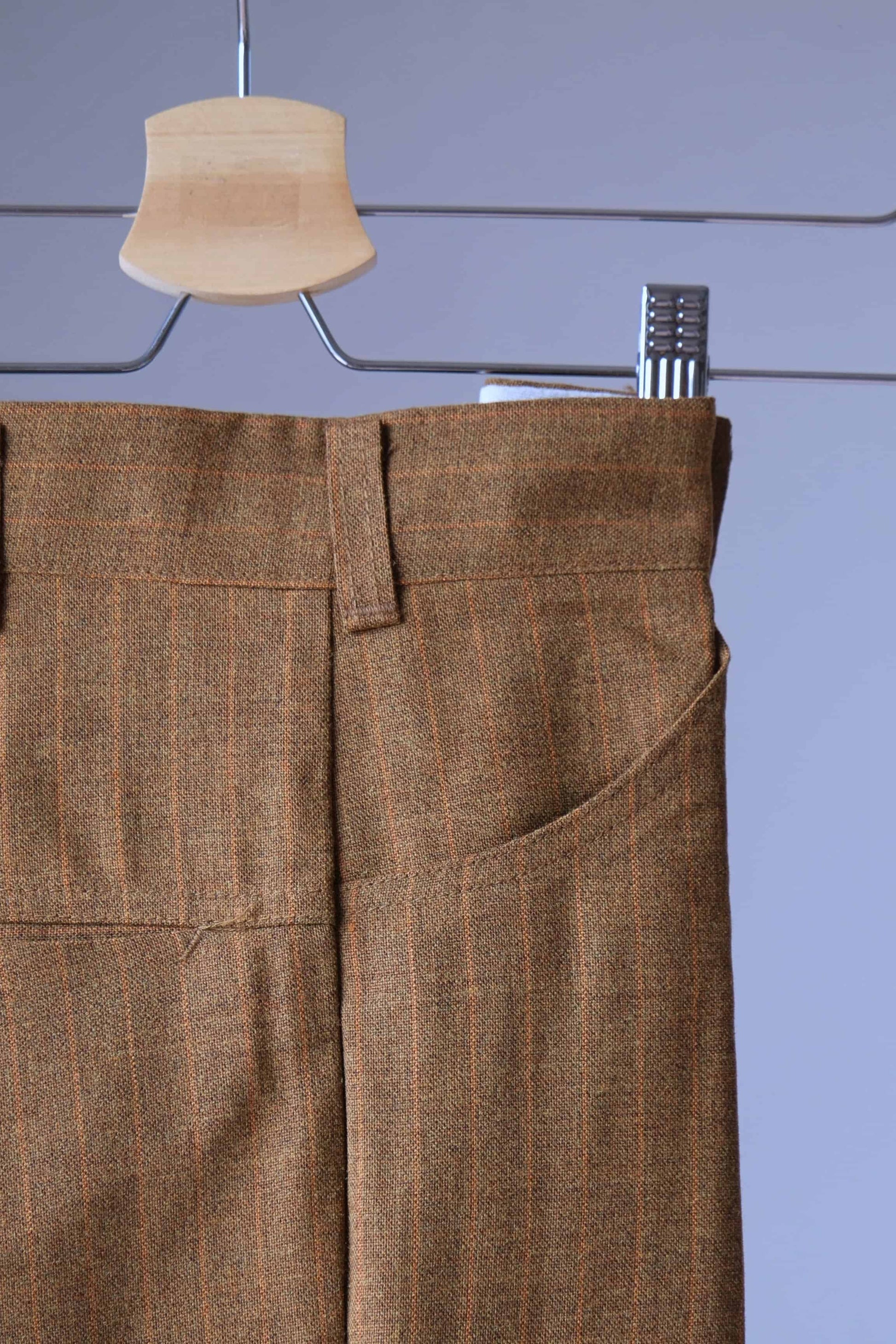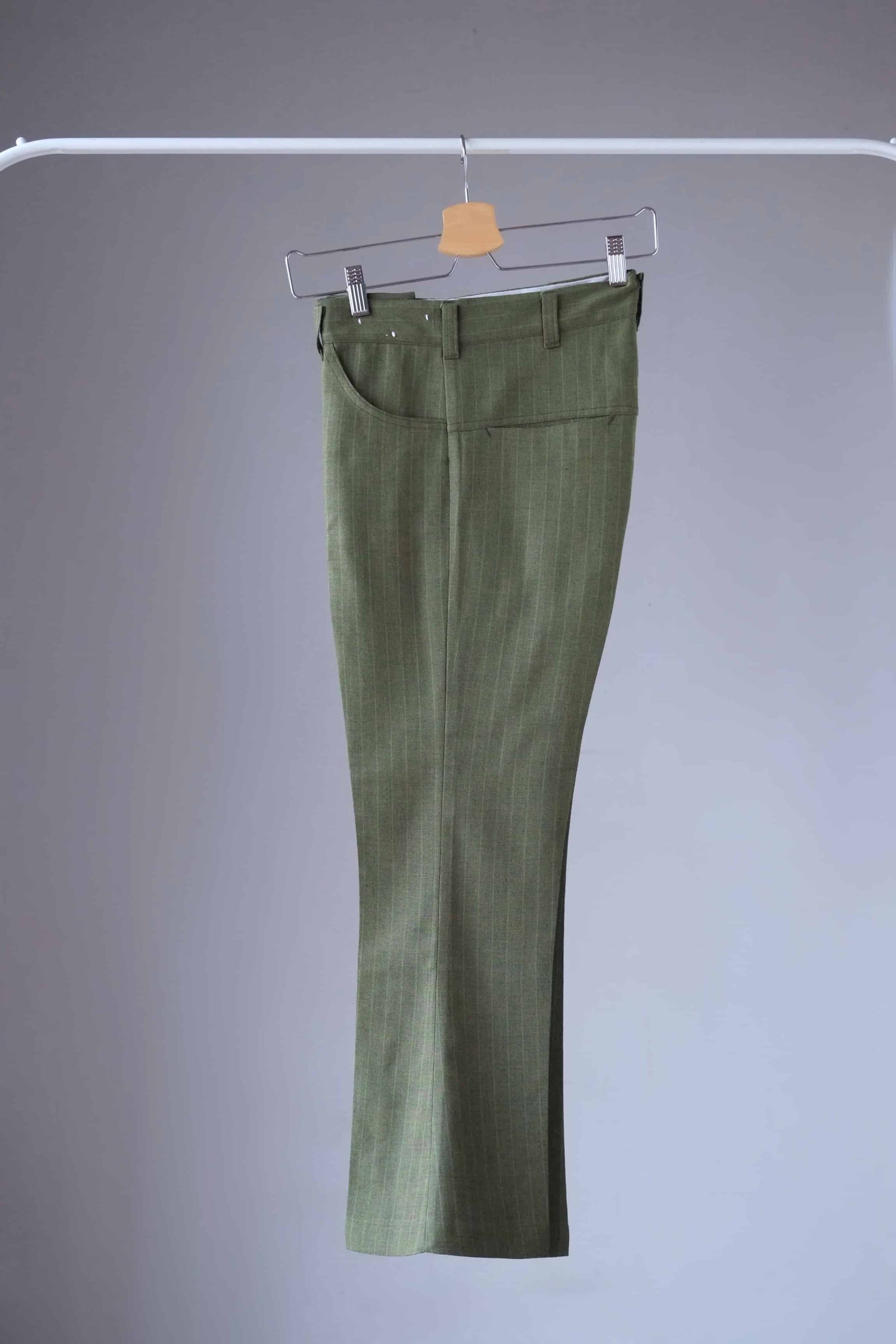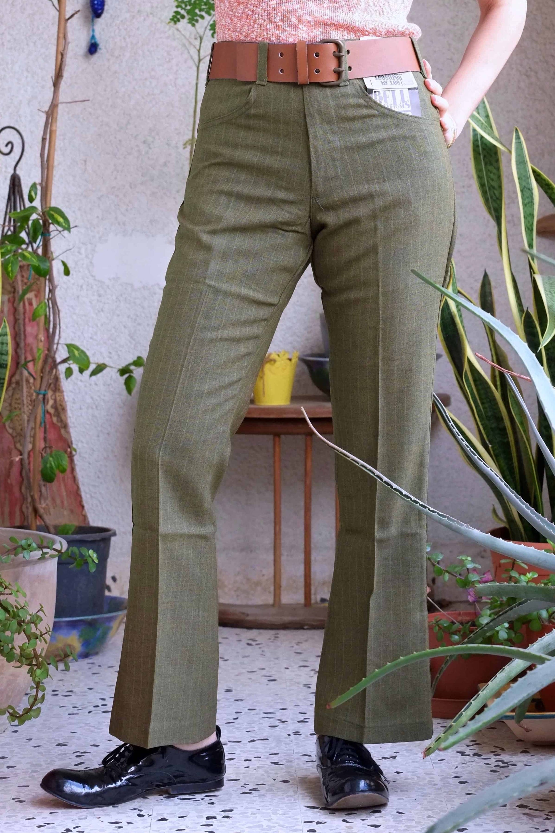 These rare Lee Fastback vintage late 60's to early 70's Bell Bottoms are made from a heather stripe fabric, mid-rise fit and flare hems. They also have 2 front pockets, 2 invisible back pockets, belt loops, a zipper closure and Lee embossed buttons. Perfect for any vintage lover!