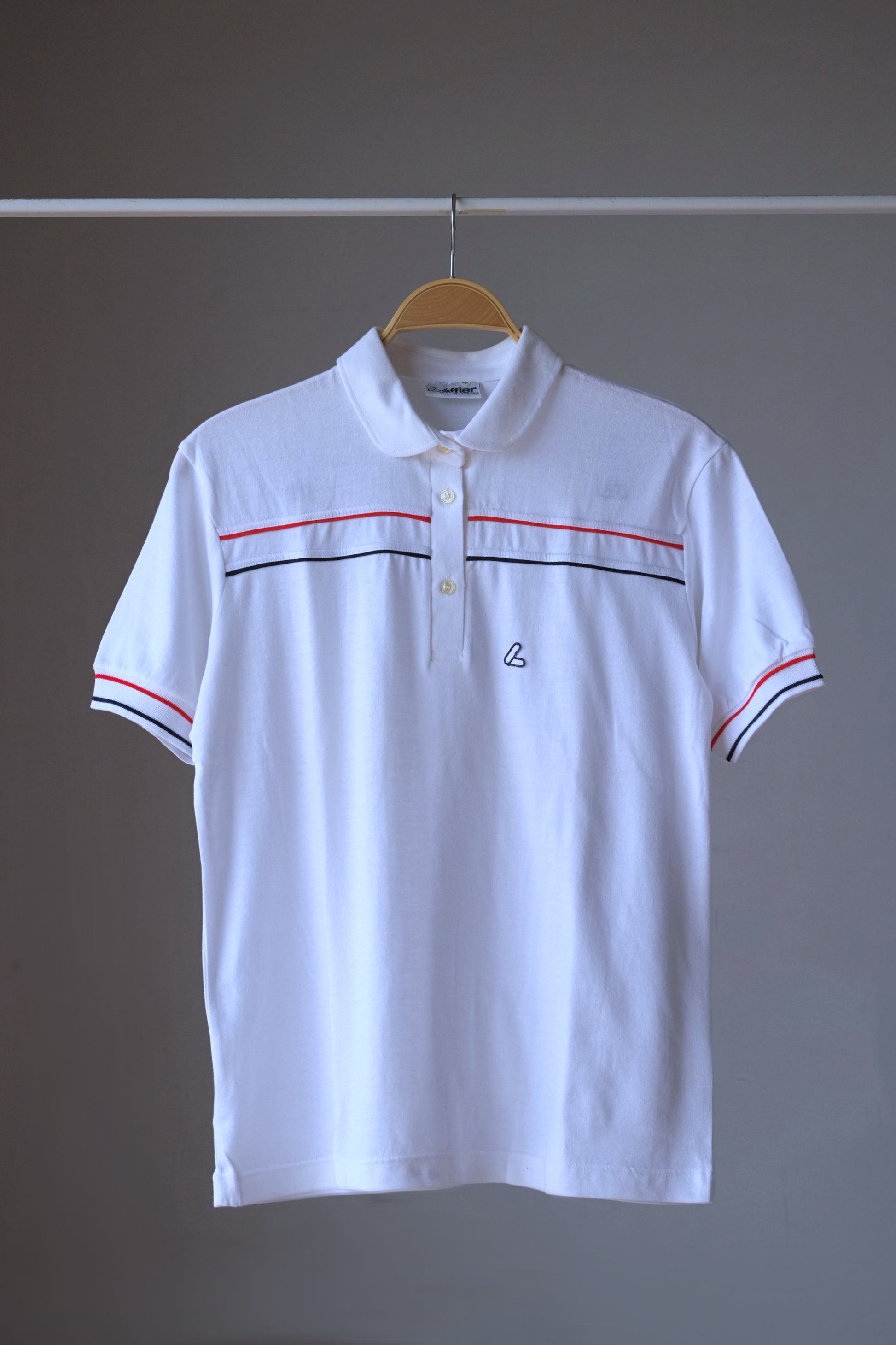 Vintage 80's Löffler polo shirt, with red and navy edging across the chest and the armbands. Vintage early 80's tennis polo shirt, works also for daily wear.