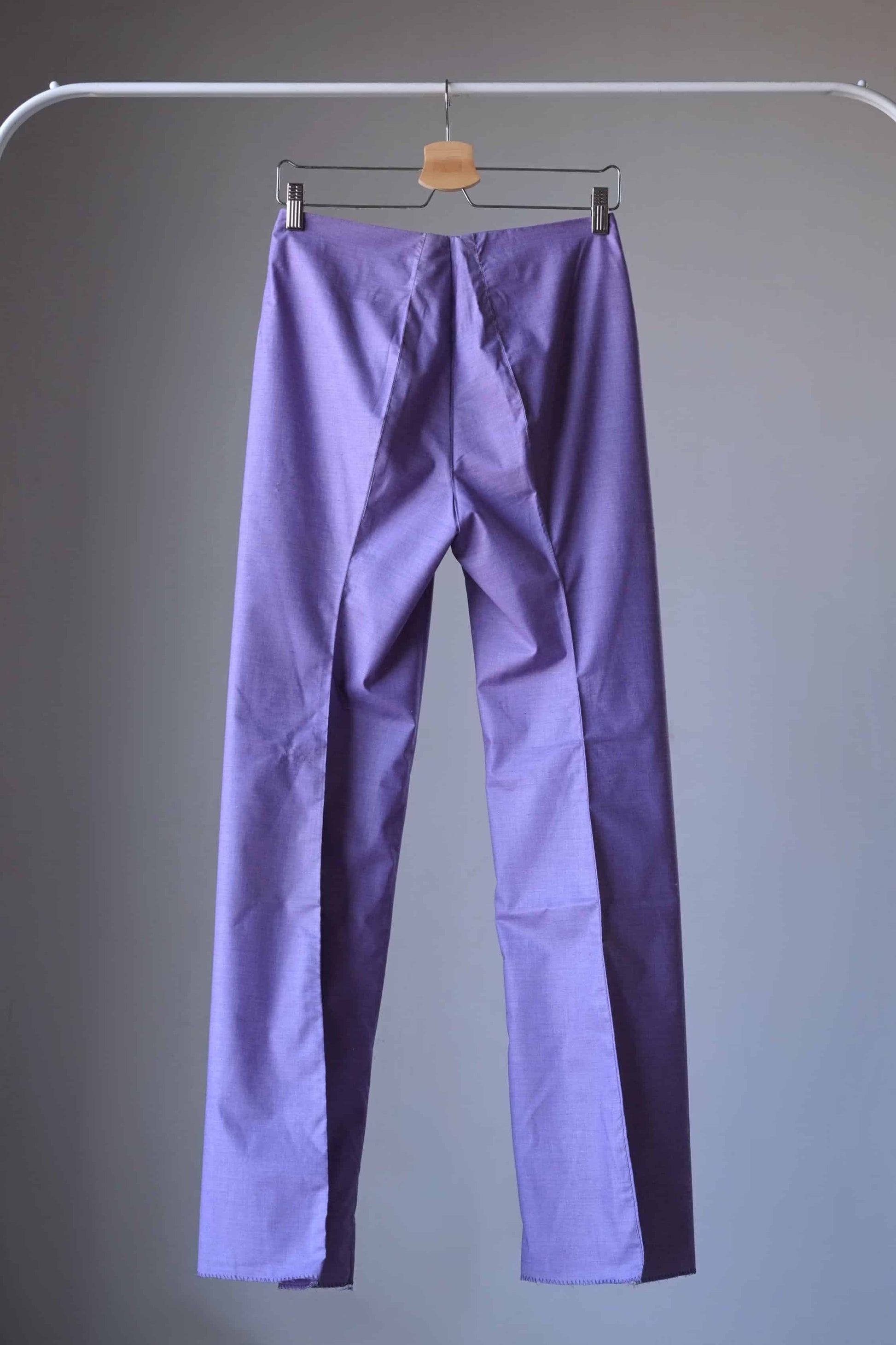 The Mona pants are vintage 70's pants made from Tergal fabric. Smooth and silky texture, straight cut with no waistband, 2 flat pockets and visible buttons closure. Light material and a fitted style, high waist featuring a front crease line, with an un-stitched hem (see last photo) so the length can be adjusted to personal liking.