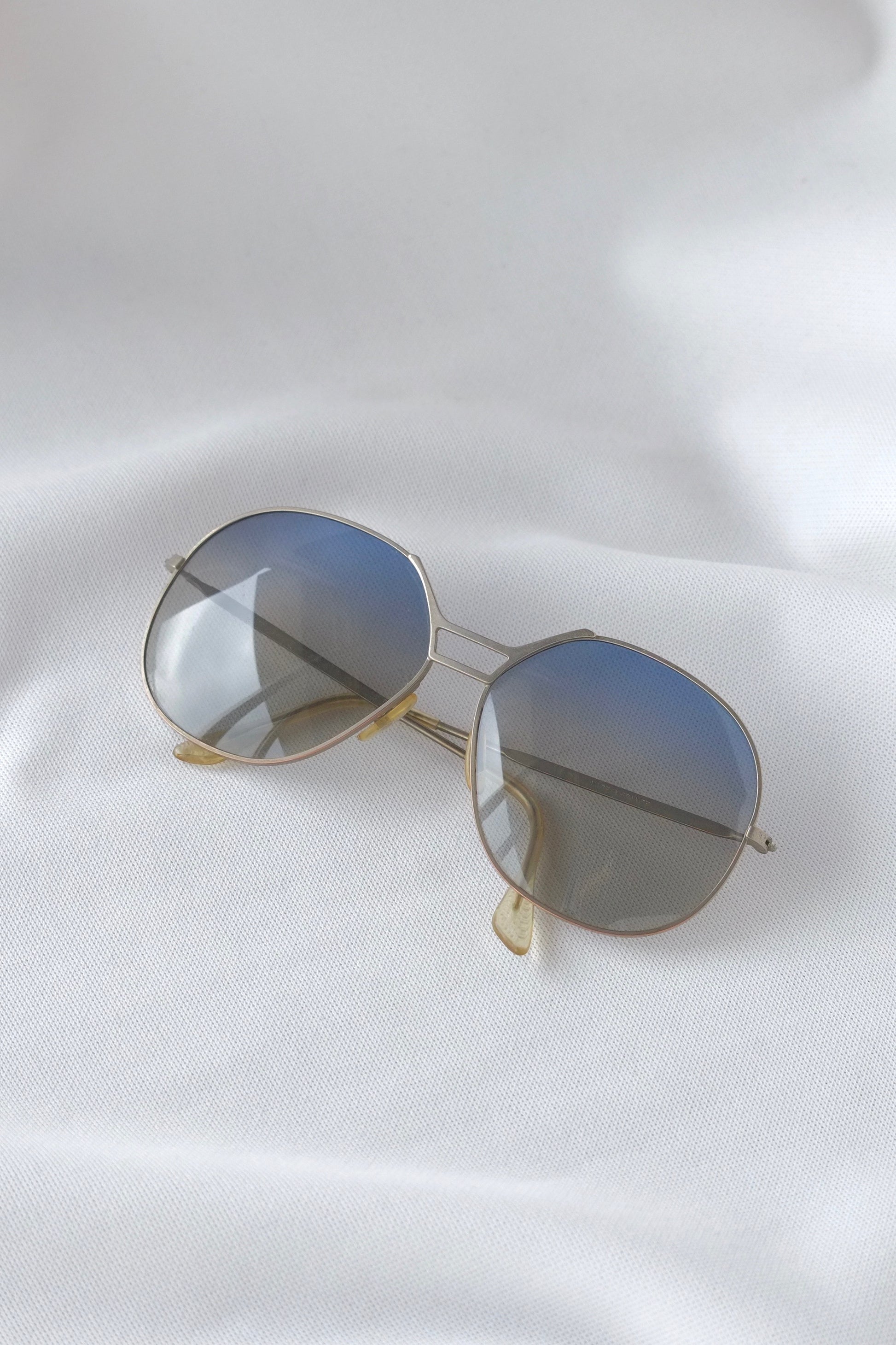 POLAROID Oversized Metal Vintage 60s-70s Sunglasses. Gradient blue/gray lenses with a neon orange frame.
