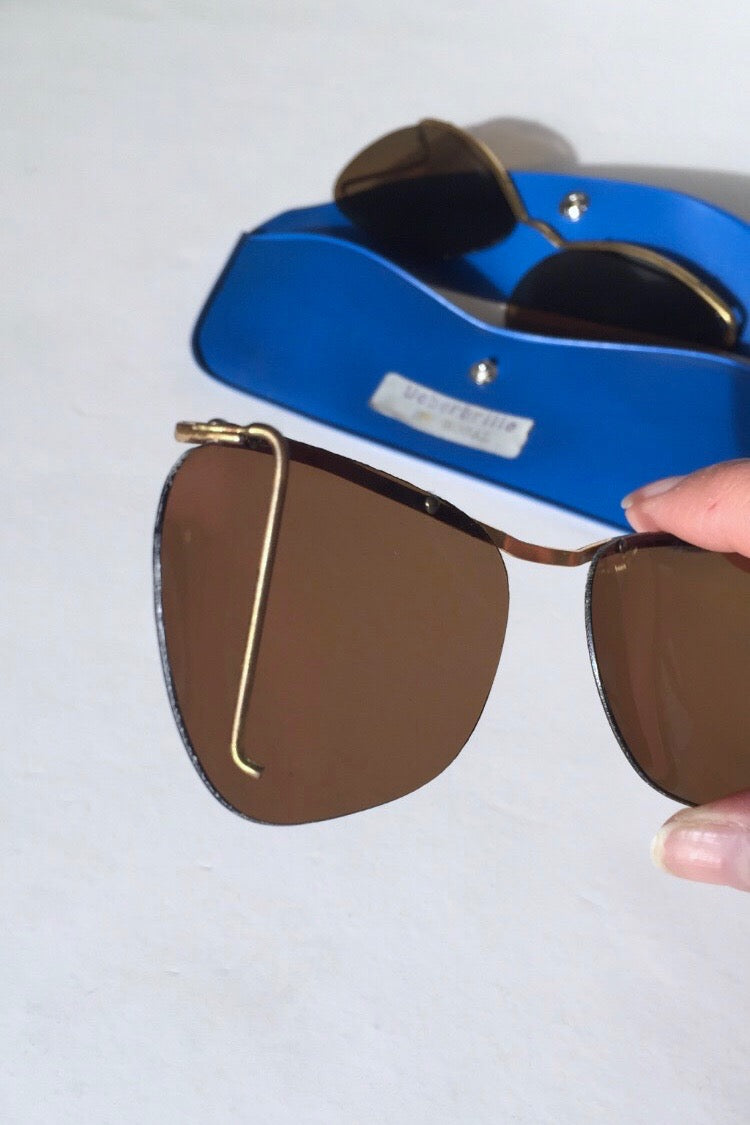 WINKLER Vintage 60's Over-Shades. Butterfly clip-on vintage shades with brown lens.