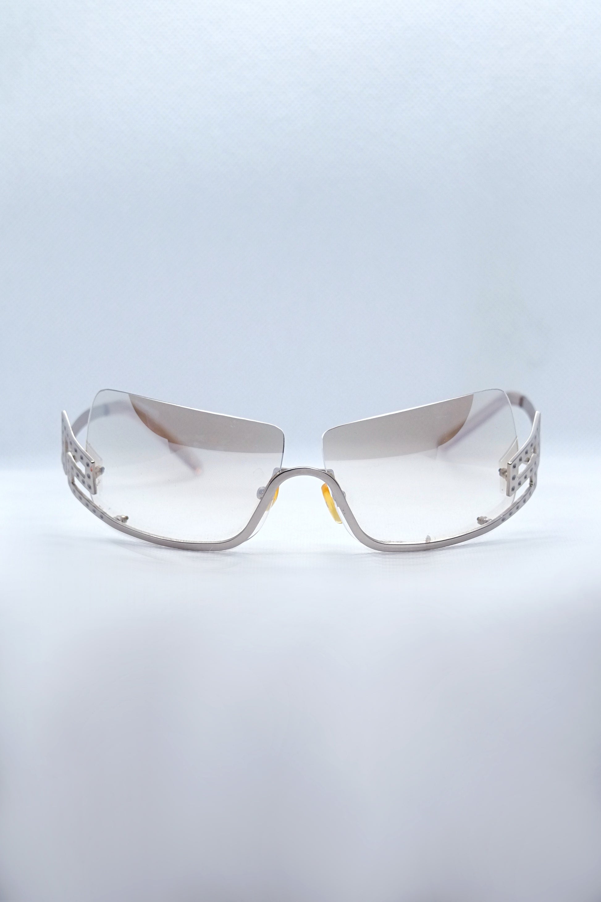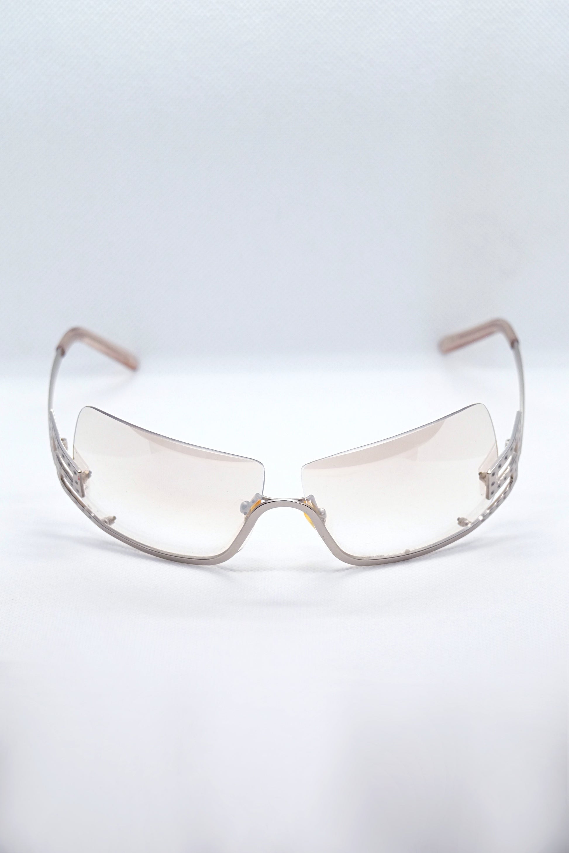Y2K rectangle semi rim from the bottom sunglasses with visible embellished metal hardware.